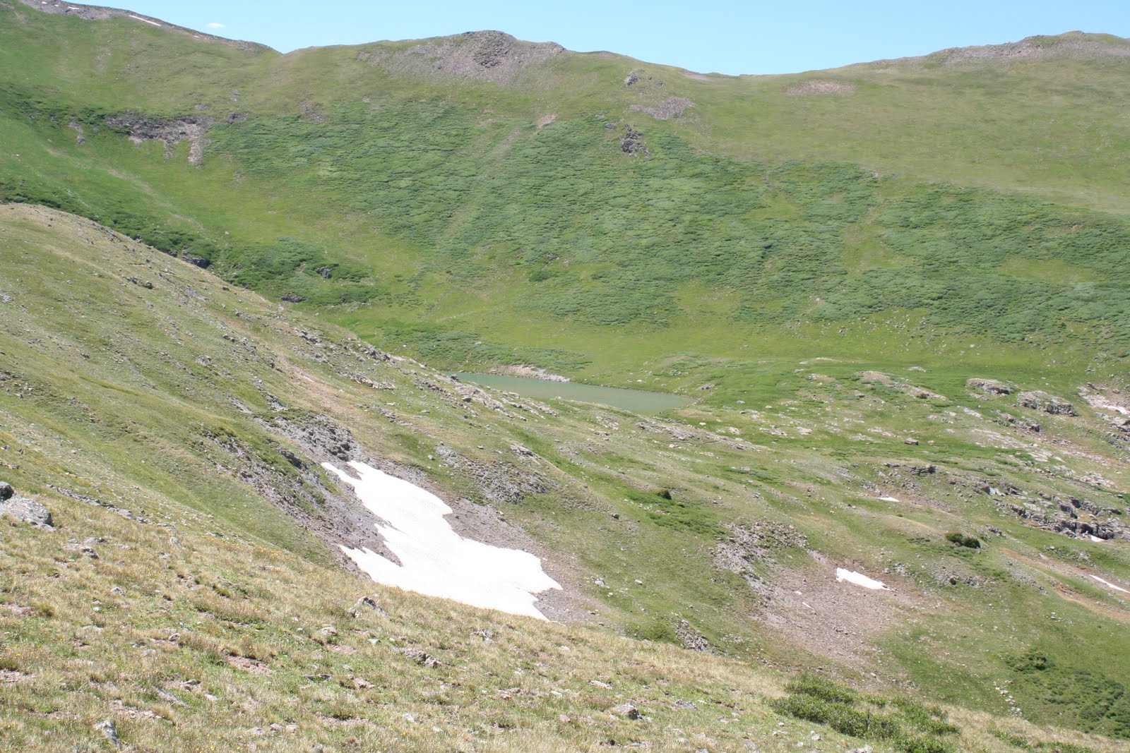 The trail had a mild grade to it, but nothing too steep at all. It was nice after having encountered so much steep downhill terrain the day before. Jo and I were enjoying ourselves immensely. There is one thing to take note of: the flies. Never, ever, ever have we hiked on a trail with more flies. It was really weird and very annoying. Mosquitoes were abundant as well, but they didn't like our bug spray too well and so kept their distance. The flies, however, didn't mind it so much and seemed to follow us the whole way, waiting for us to stop walking so they could swarm us. We wouldn't have minded so much if they just wanted to buzz around and crawl, but those suckers bit and it hurt! I took the random pic below when Jo stopped to adjust his shoe, and the flies were out in force. Nuts, I tell you.